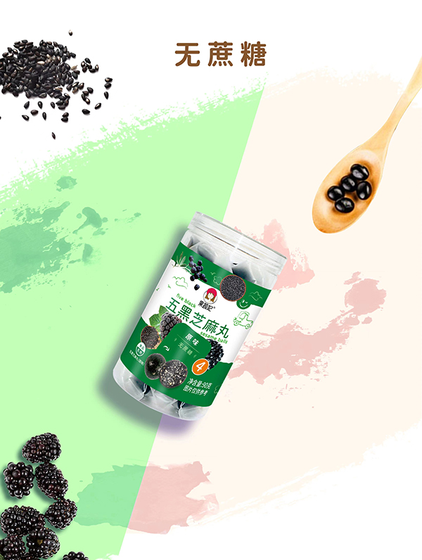 果蔬妃【五黑芝麻丸】融合黑芝麻、黑豆、黑米、黑枸杞和桑葚的營養(yǎng)成分,使用木糖醇替代蔗糖,古法工藝,醇香清甜;含有鈣鐵鋅和維生素E,適合孕媽寶媽和3歲以上寶寶食用!