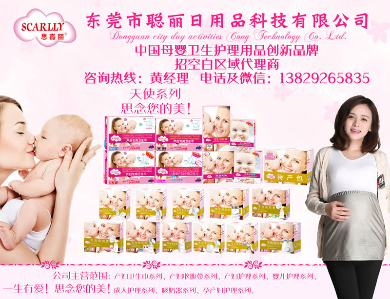 “思嘉麗”品牌,產(chǎn)品涵蓋產(chǎn)婦收腹帶、產(chǎn)婦衛(wèi)生巾、吸奶器、嬰兒紙尿褲等,是東莞市聰麗日用品科技有限公司主打品牌,公司長期以來致力于孕產(chǎn)婦和嬰幼兒產(chǎn)品的研制開發(fā),長期與有關(guān)婦嬰專家緊密協(xié)作。