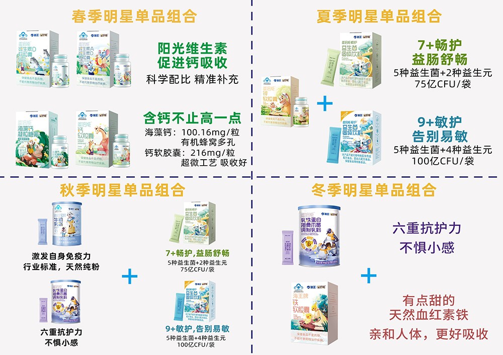 品牌名稱:海王星倍能 主營產品:海王星倍能藍帽軟膠囊,DHA,益生菌,乳鐵蛋白,鈣鐵鋅 品牌特色:海王星倍能嬰童營養(yǎng)保健品