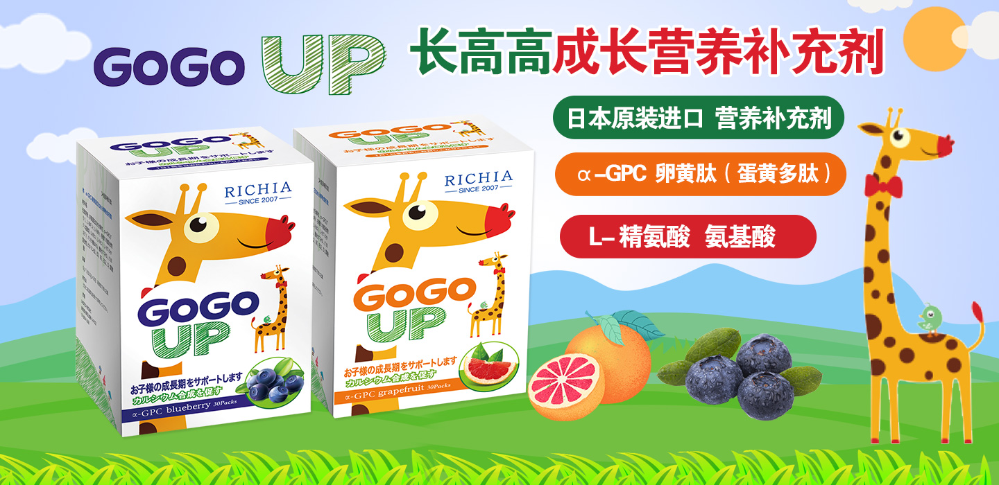 RICHIA品牌,來自日本,其工廠是一家有著60年歷史的大廠,在日本有著良好的口碑。主打產(chǎn)品gogoup 營養(yǎng)補(bǔ)充劑,讓孩子快快長高,一路領(lǐng)跑!RICHIA gogoup 產(chǎn)品,來自日本無輻射區(qū),安全有保障。由醫(yī)學(xué)界權(quán)威的森吉臣博士團(tuán)隊研發(fā),獲得HACCP衛(wèi)生管理認(rèn)證證書、日本FSSC2200認(rèn)證證書,并在日本?漆t(yī)院推薦補(bǔ)充成長營養(yǎng)專用。杭州漫宇進(jìn)出口有限公司全權(quán)負(fù)責(zé)RICHIA gogoup 產(chǎn)品在中國地區(qū)的推廣和招商。