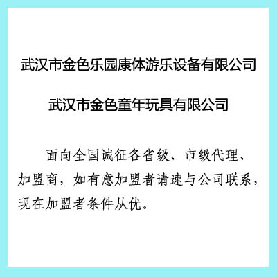 溫馨提示:  武漢市金色樂園康體游樂設(shè)備有限公司    留言即可查看廠家聯(lián)系方式!