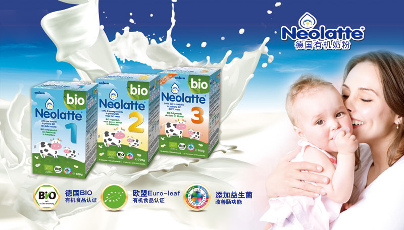 Neolatte 屬于高端有機(jī)奶粉,整個生產(chǎn)過程中符合環(huán)保,其有機(jī)生產(chǎn)過程完全遵守歐盟有機(jī)食品生產(chǎn)的法規(guī),也得到了 德國聯(lián)邦政府保護(hù)消費(fèi)者部門的認(rèn)證,并擁有歐盟有機(jī)農(nóng)業(yè)食品的新標(biāo)志。