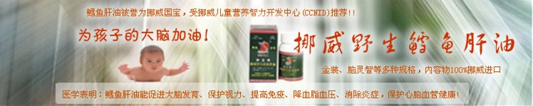 從2001年起,挪威連續(xù)6年被評(píng)為世界上生活質(zhì)量最高(最適宜居。┑膰(guó)家,挪威人均用藥量只有 美國(guó)的三分之一。挪威政府十分重視孕婦和嬰幼兒的健康,2001年11月發(fā)布了為婦嬰保健人員和準(zhǔn)媽媽 寫的《嬰幼兒營(yíng)養(yǎng)指導(dǎo)》修訂本,全面闡述孩子喂養(yǎng)問題,其中36處提到鱈魚肝油。你想知道挪威人怎樣喂養(yǎng)寶寶嗎?挪亞公司現(xiàn)有中譯本,可到公司索取。