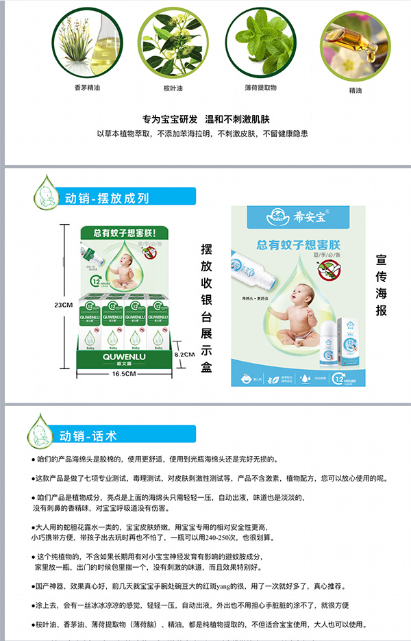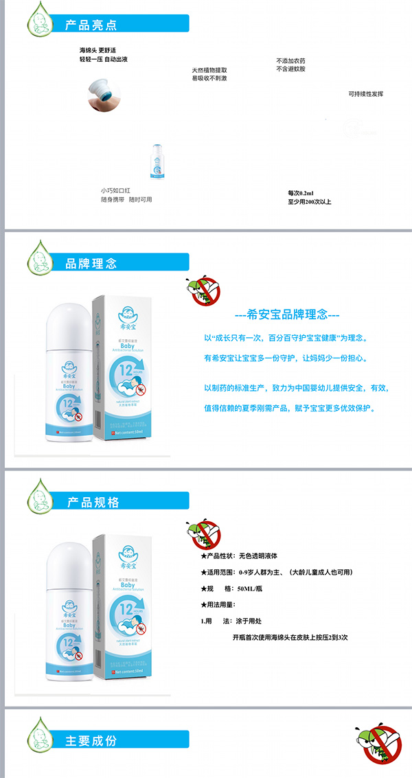 希安寶,以“成長只有一次,百分百守護寶寶健康”為理念。有希安寶讓寶寶多一份守護,讓媽媽少一份擔(dān)心。以制藥的標(biāo)準(zhǔn)生產(chǎn),致力為中國yingye提供安全,有效,值得信賴的夏季剛需產(chǎn)品,賦予寶寶更多優(yōu)效保護。