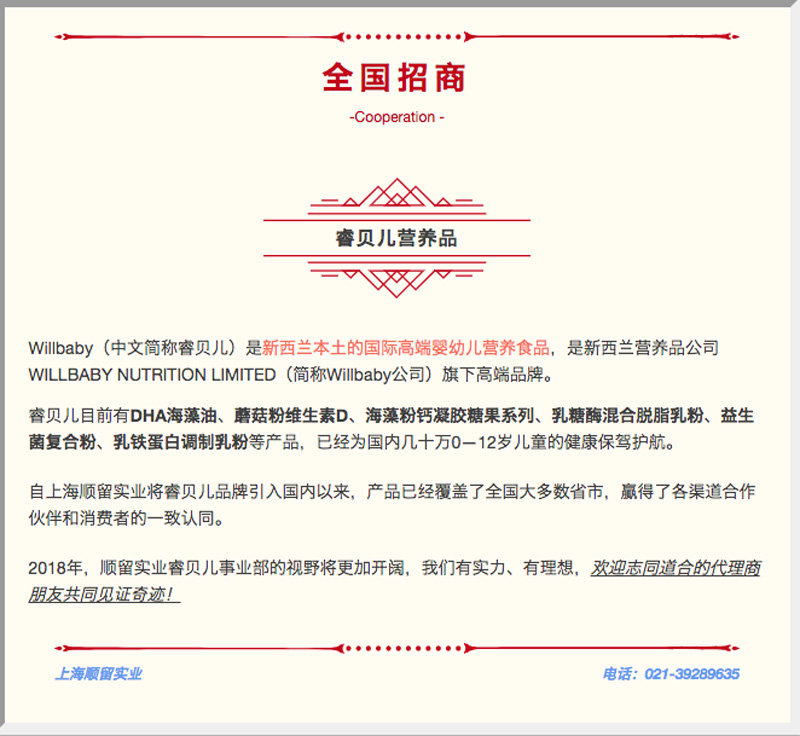 主營產(chǎn)品:Willbaby睿貝兒益生菌,乳鐵蛋白 產(chǎn)品(5個(gè))新聞(9條)