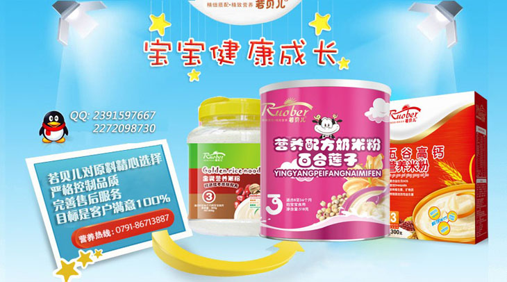 品牌名稱:若貝兒 主營產(chǎn)品:若貝兒嬰幼兒米粉招商 品牌特色:營養(yǎng)均衡 健康