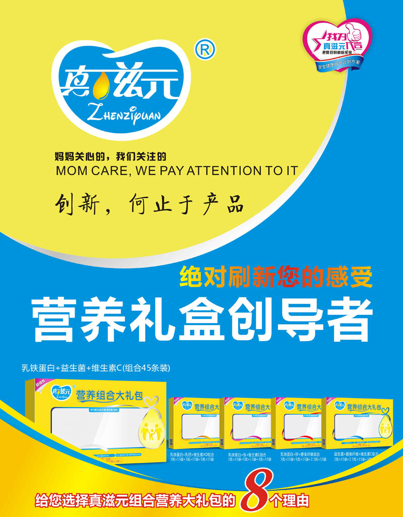 優(yōu)異的品質(zhì),使“真滋元”系列產(chǎn)品不斷得到消費者的稱贊;一站式共同成長的服務(wù)模式,使“真滋元”獲得眾多客戶的一致青睞;良好的口碑,鋪墊起“真滋元”光明的未來!多年來,真滋元注重于創(chuàng)造有生命力的企業(yè),每一個真滋元人都肩負使命,為我國嬰幼兒的健康成長提供更優(yōu)質(zhì)的營養(yǎng)食品,讓全天下的父母親安心、放心又舒心!