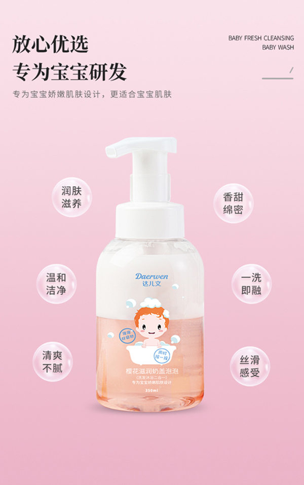 武漢達(dá)兒文生物科技有限公司是一家專門致力于孕嬰童產(chǎn)品的公司,旗下的達(dá)兒文來源正規(guī),沒有中間層層剝利環(huán)節(jié),絕對的降價不降質(zhì),是廣大代理商朋友的理想選擇。尤其是這款達(dá)兒文櫻花滋潤奶蓋泡泡,更是值得青睞!