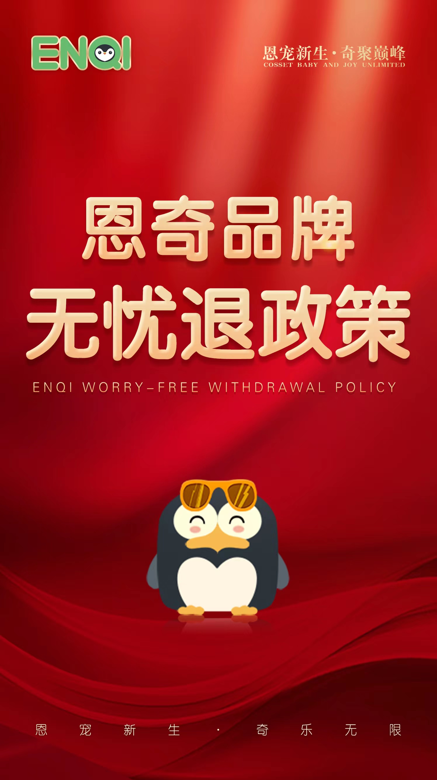 打款當月退代理,剩余貨款全額退!如果產品下單,收到貨了,但是又不想賣了,怎么辦?依然全額退!是的,你沒有聽錯,這就是恩奇的無憂退政策,驚不驚喜!