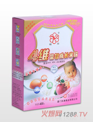 鷺芳4維嬰幼輔食品牌隸屬廈門東浦食品有限公司,現(xiàn)有生產(chǎn)的產(chǎn)品系列有嬰幼兒營養(yǎng)米粉和精制嬰幼兒谷粉系列,包含36款單品,選材考究,搭配合理,配比科學精確,是廣受市場歡迎的產(chǎn)品,現(xiàn)面向全國空白市場區(qū)域誠招代理商加盟。
