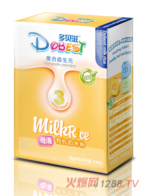 多貝滋有機奶米粉有乳清蛋白配方、雙歧因子配方、復合益生元配方以及DHA+RR配方等四種不同口味及配方的米粉,可供媽媽們任意挑選。多貝滋有機奶米粉是您的bao--bao飲食過渡的首選。