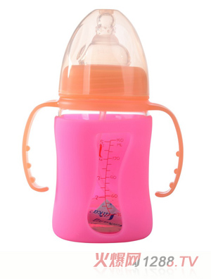 矽利康有手柄寬口玻璃奶瓶以高級(jí)耐熱玻璃制成,無(wú)接縫、不卡奶垢、易清洗,可耐高溫600度,耐熱急變溫度200度,膨脹系數(shù)高達(dá)30%。