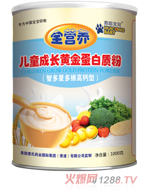 惠聰寶貝高鈣低脂蛋白質粉可全面補充營養(yǎng),采用高鈣新配方,有利于bao--bao的骨骼發(fā)育,還特別添加了多種維生素和礦物質;萋攲氊悆和砷L黃金蛋白質粉專為中國bao--bao研制,富含多種維生素和鈣元素。