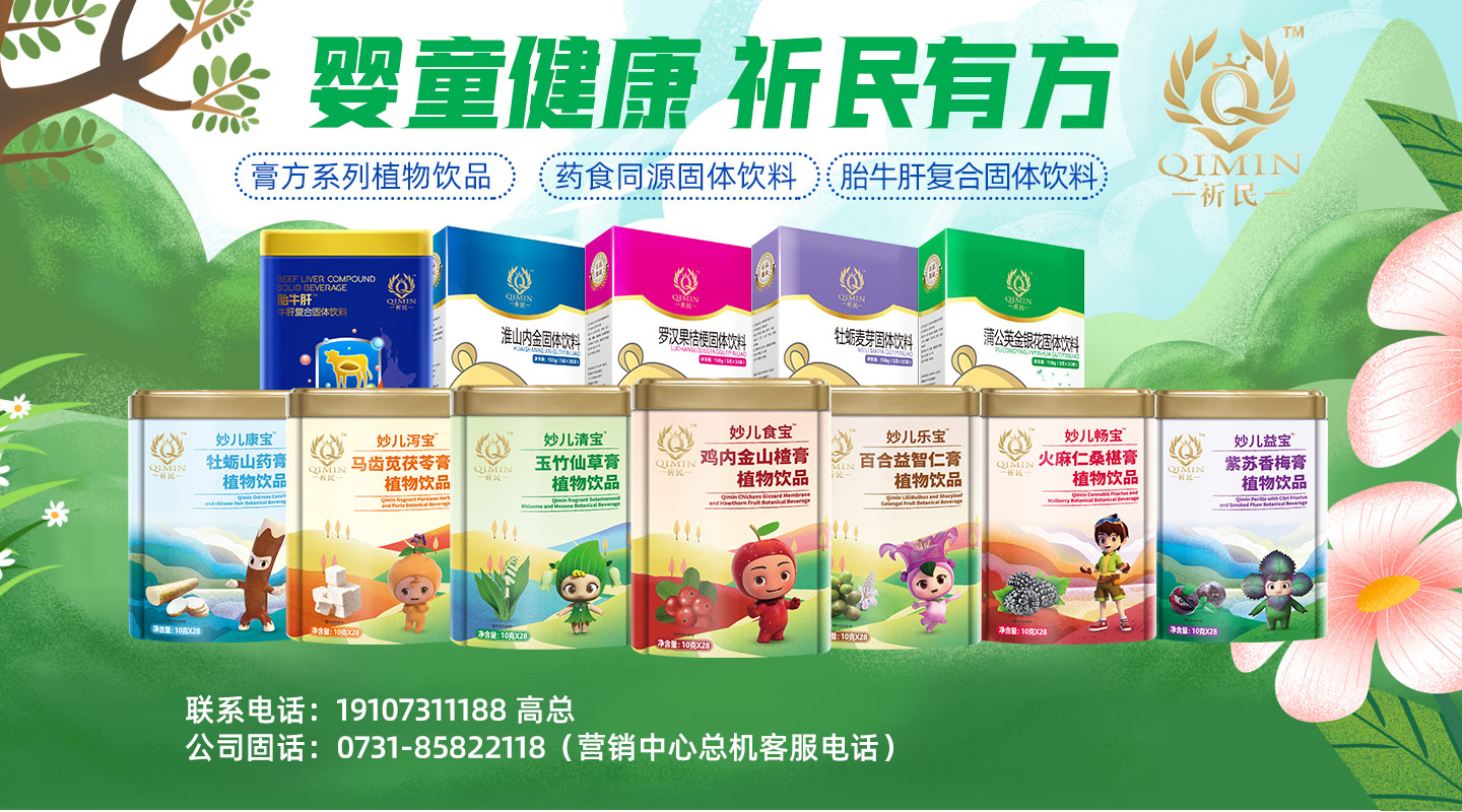 祈民,是湖南妙元生物科技有限公司旗下品牌,秉承“嬰童健康,祈民有方”的品牌理念,與湖南省中醫(yī)藥研究院、香港衍生集團(tuán)達(dá)成戰(zhàn)略合作,將藥食同源,健康之源理念,灌注于每個(gè)產(chǎn)品的研發(fā),潛心研制符合現(xiàn)代嬰童健康需求的大健康產(chǎn)品。所有產(chǎn)品均萃取天然草本原料,生產(chǎn)過程中絕無添加。目前旗下有膏方系列植物飲品、藥食同源固體飲料以及胎牛肝復(fù)合固體飲料。