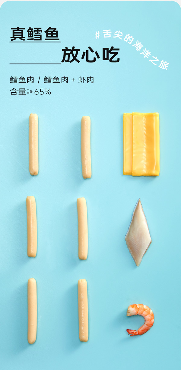藍(lán)貝多多深海鱈魚(yú)腸,甄選優(yōu)質(zhì)食材,選取深海無(wú)刺鱈魚(yú)肉/深海手剝蝦,鱈魚(yú)肉/蝦肉含量≥65%,含豐富DHA以及人體必需的多種微量元素,采用多道工序制作,Q彈鮮嫩,守護(hù)味蕾,品質(zhì)安全,媽媽更放心。