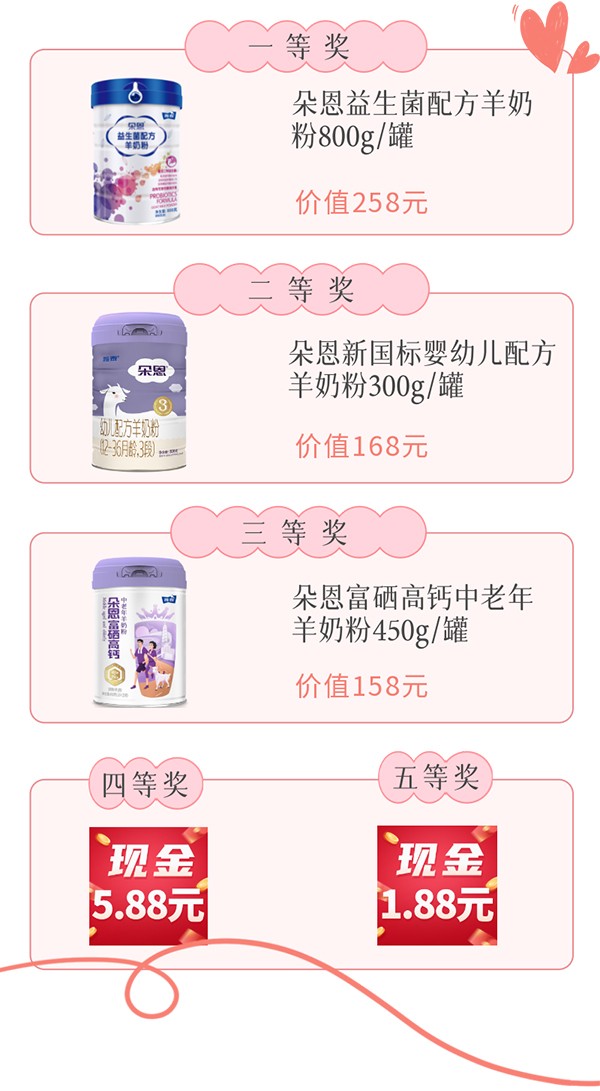 贏取朵恩羊奶粉、現(xiàn)金紅包寵粉福利